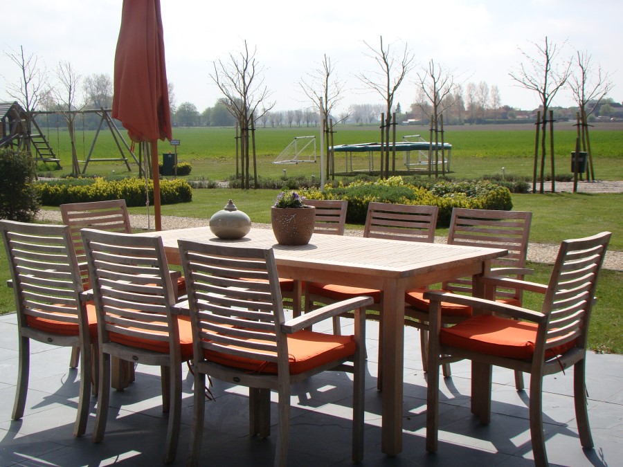 - Tuinmeubilair, ligstoelen, barbecue (houtskool) en speeltoestellen